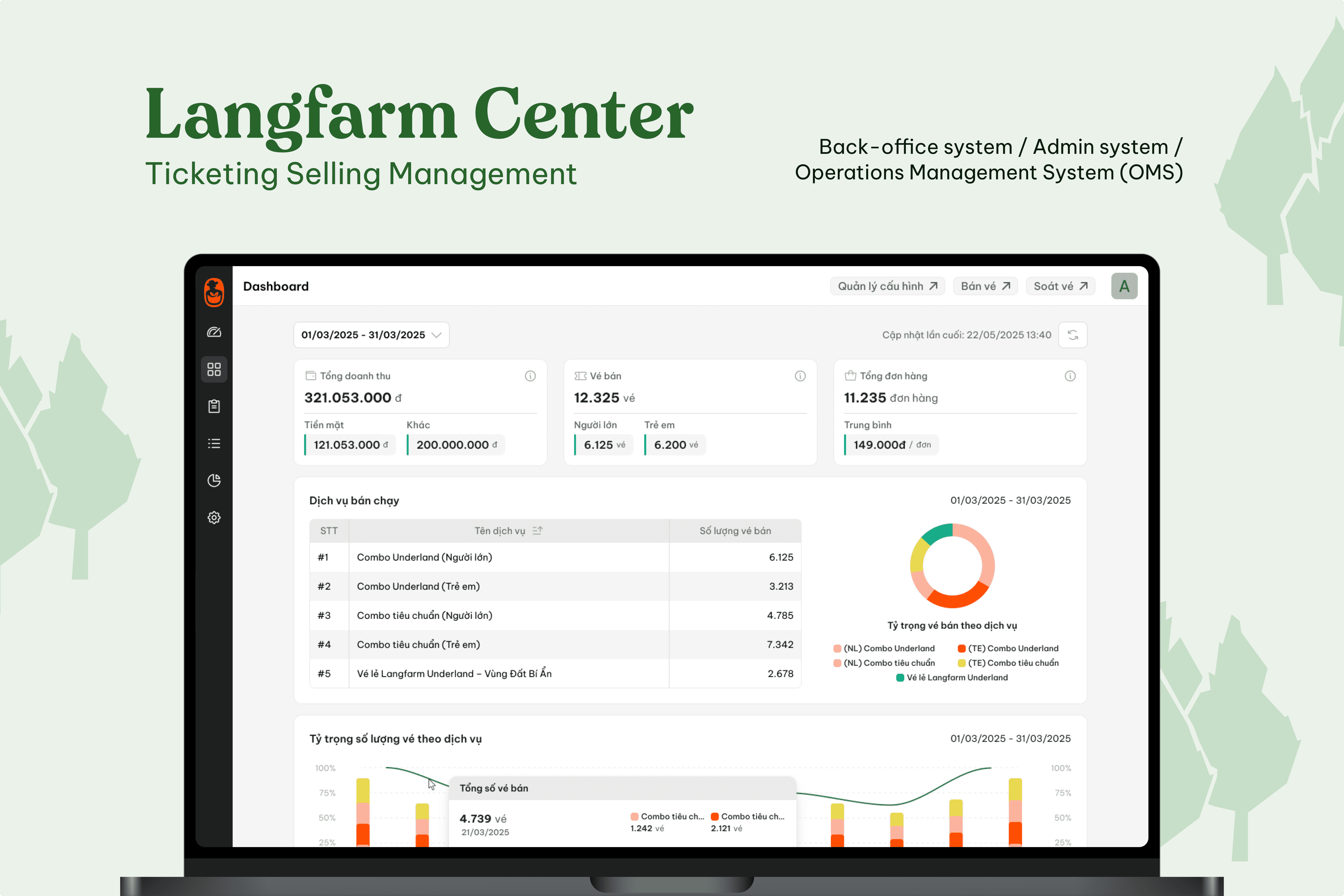 This project is a comprehensive ticket selling management system developed for Langfarm Center to streamline operations and enhance user experience. It features a centralized management dashboard for real-time monitoring, a ticketing system for event ticket creation and distribution, and integrated payment methods supporting cards, e-wallets, and QR codes. The platform also includes data reporting tools for performance insights and a content management system (CMS) to efficiently manage event and promotional content.